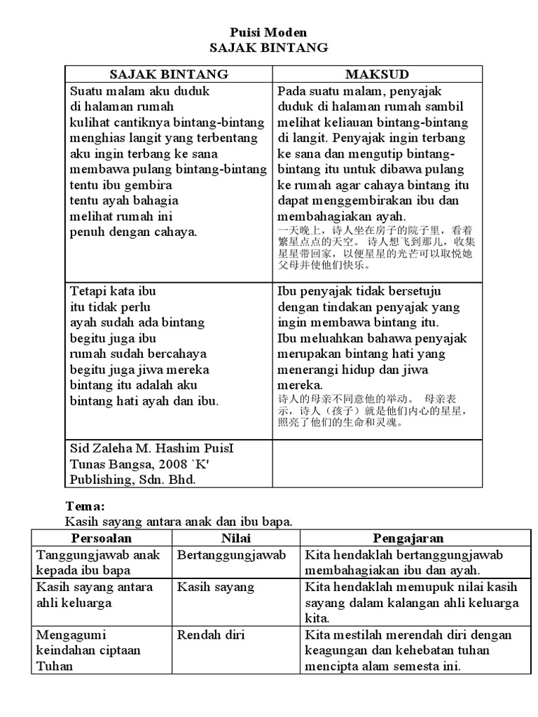 Latihan Sajak Bintang Pdf Maksud Tema Persoalan Nilai Pengajaran Gaya Bahasa Nada Sajak Senja Di Palang Besi K. 7 Pernyataan berikut bukan persoalan yang diketengahkan dalam sajak Bintang. A ketabahan hidup dalam menghadapi masa tua.
